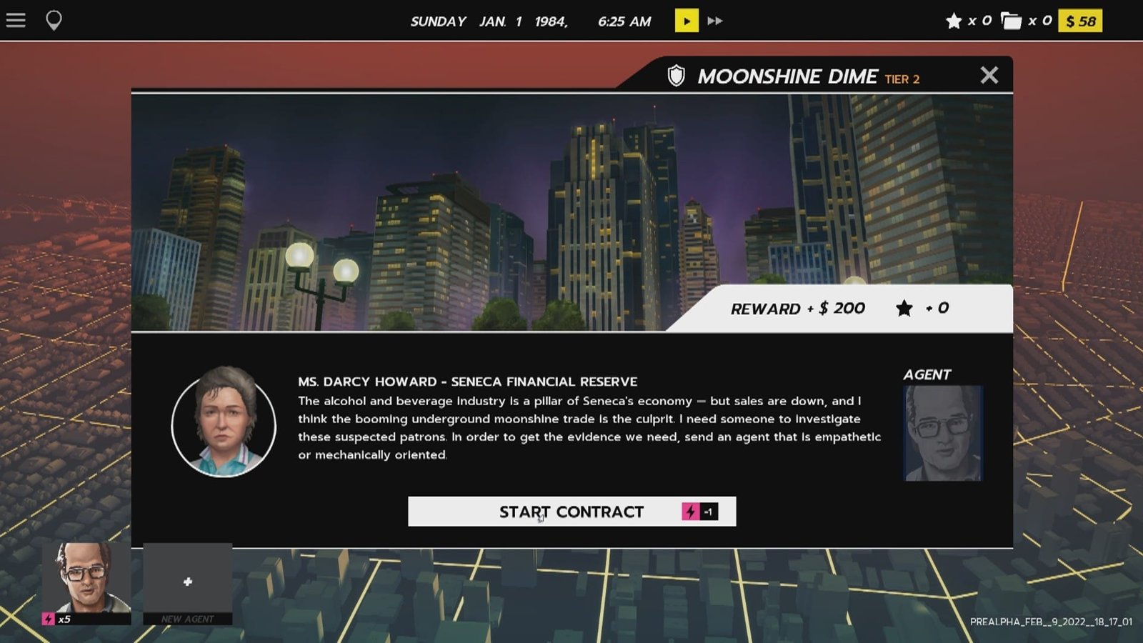El juego es del género estrategia para un solo jugador, en el que diriges una agencia de seguridad privada. Contrate, administre, capacite y despliegue agentes para cumplir con una serie de contratos de varios clientes, incluidas tareas de recuperación de fugitivos, recuperación de posesión e investigación privada.